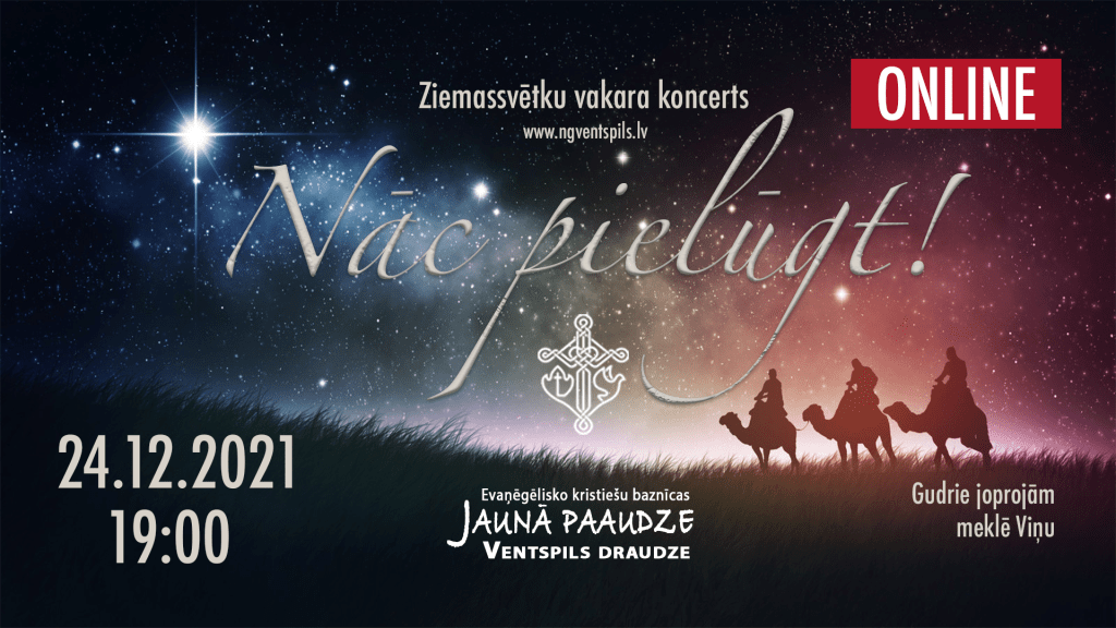 Sveicam Kristus dzimšanas svētkos Skaties koncertu YouTube kanālā vai Facebook lapā plkst. 19:00. Dalīties ar šo: Koplietot Facebook(Atvērsies jaunā logā) Facebook Share on WhatsApp(Atvērsies jaunā logā) WhatsApp Drukāt(Atvērsies jaunā logā) Print Email a link to a friend(Atvērsies jaunā logā) Email Share on Telegram(Atvērsies jaunā logā) Telegram Patīk Notiek ielāde...