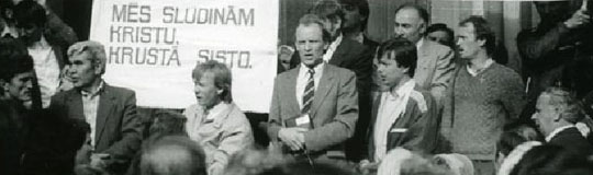 Будучи «церковью на ступенях», абсолютно бездомными, они сумели организовать в Доме спорта крупнейшую евангелизационную кампанию в Прибалтике. На этот праздник был приглашён Питер Вэнс – немецкий евангелист, подготовлены три хора, музыкальная команда. Получился грандиозный праздник. Но, когда он закончился, пришлось снова возвратиться на ступени. Позже служения продолжались в палатке, которую рижанам подарили норвежские друзья.